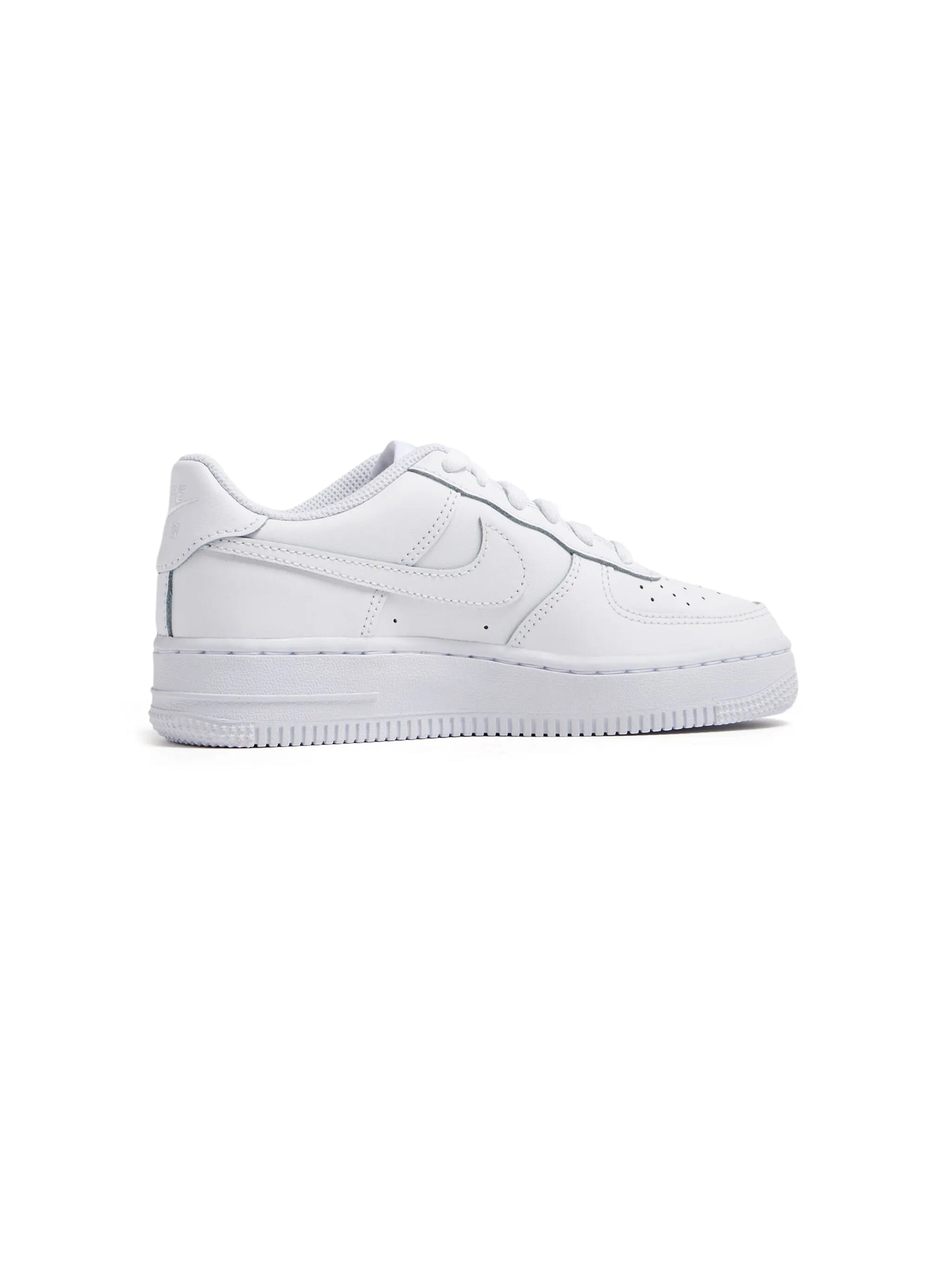 White leather Air Force 1 '07 low-top sneakers from Nike featuring a signature Nike swoosh, a perforated style, a round toe, a lace fastening and a flat rubber sole.